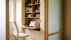Nhu cầu không hoạt động vẫn tăng, đặc biệt ở căn hộ. Nhưng thay vì đặt một góc làm việc lộ thiên như văn phòng, 2026 giải pháp ưu tiên “giấu công năng”: bàn gọn ngăn tủ hợp lý, kệ mở có đơn lọc, nhẹ nhàng hoặc rút gọn để đóng/mở trạng thái.