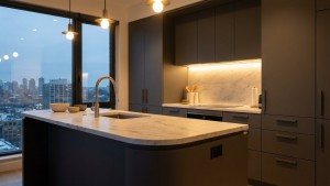 - Đảo bếp, tay nắm/chi tiết tủ mềm hơn